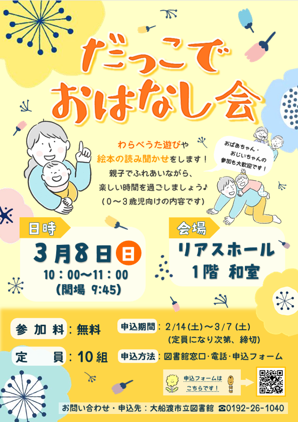 【市立図書館】だっこでおはなし会を開催します