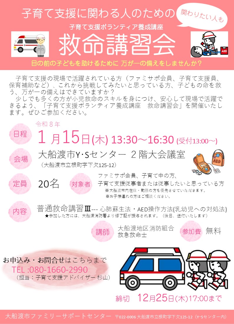 内容:心肺蘇生法・AEDの操作方法(乳幼児への対処法)
