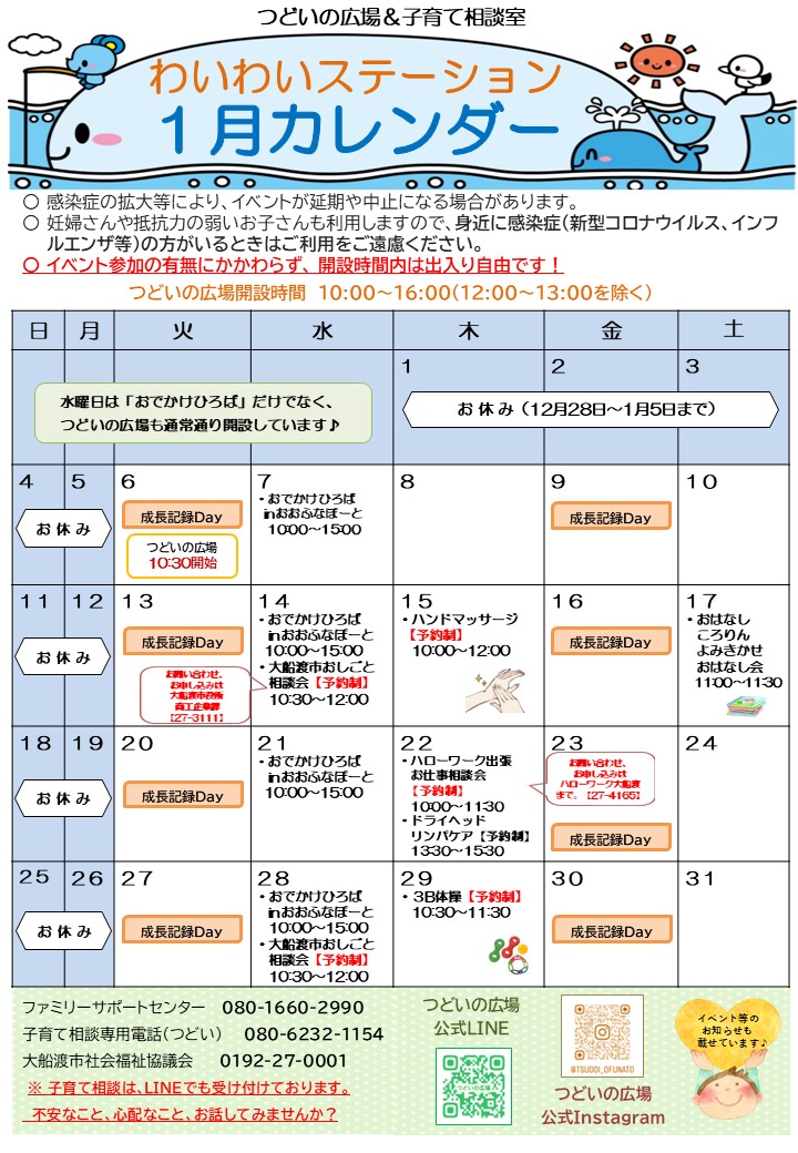 ※つどいの広場は1月6日(この日のみ10:30スタートです)から開設しています。