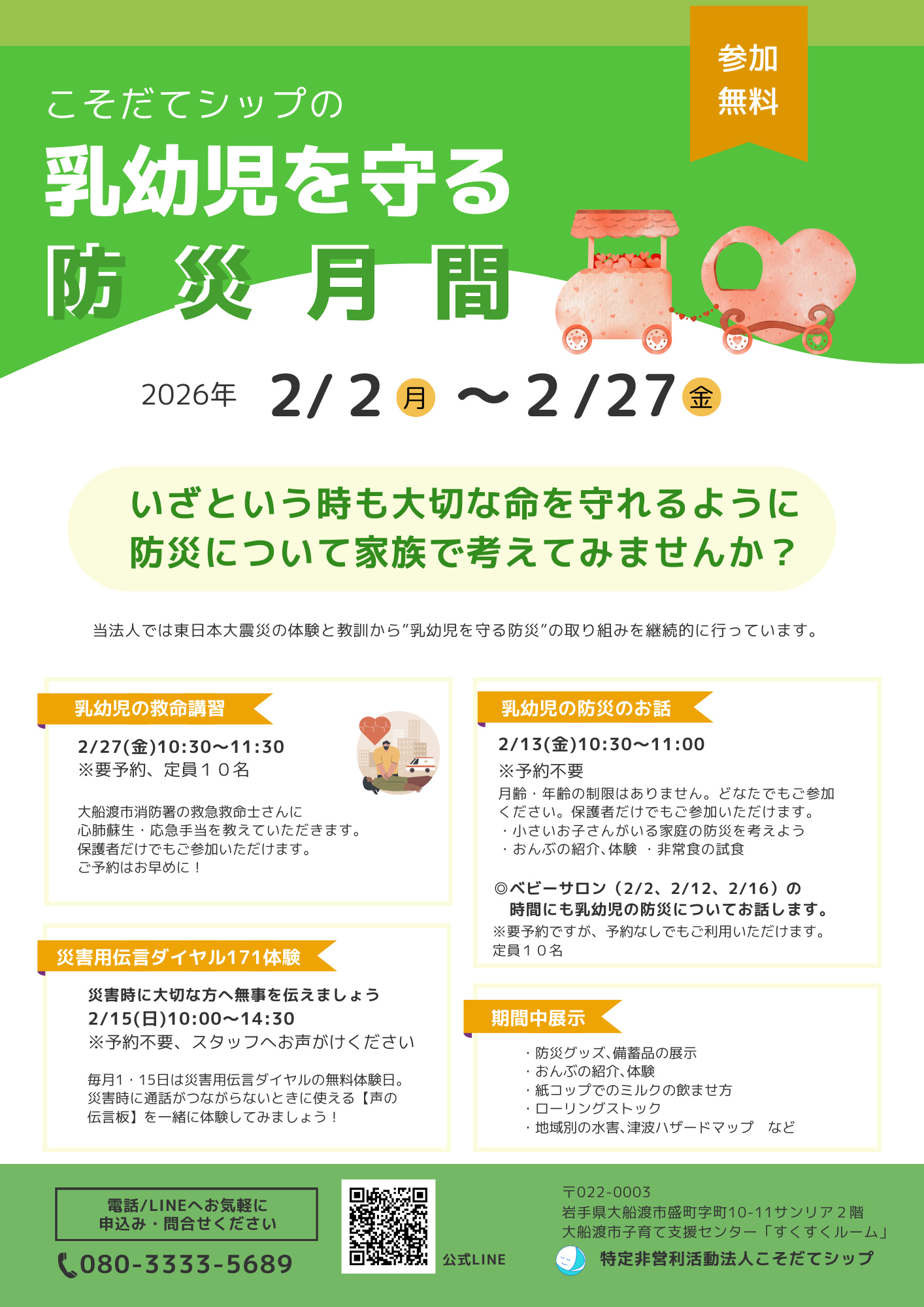 すくすく通信に記載の「乳幼児を守る防災月間」チラシです。