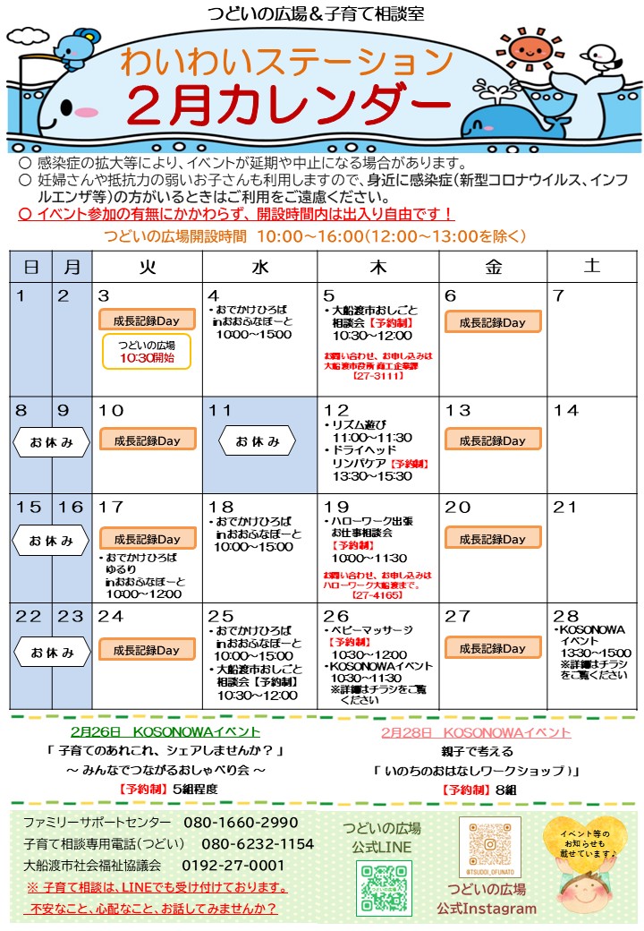 つどいの広場【2月カレンダー】をお届けします★
